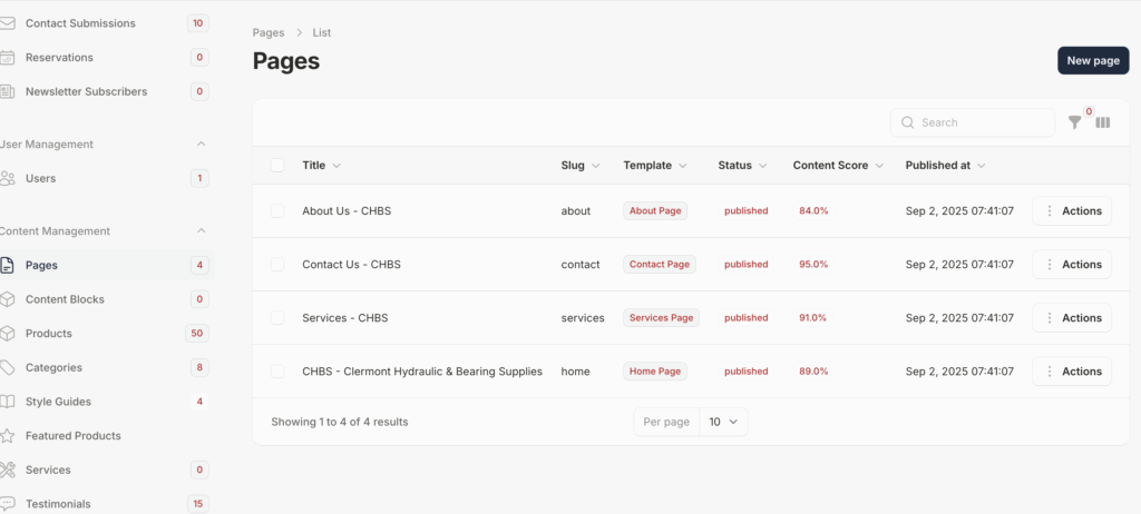 Now, inside their admin panel, every piece of content comes with a score, detailed improvement feedback, and checks for brand resonance and tone consistency. A dashboard overview highlights which sections of the site are strongest and which might need attention. For the client, this means no second-guessing, no waiting on reports, and no debating whether something âsounds rightâ; the system confirms it instantly.
